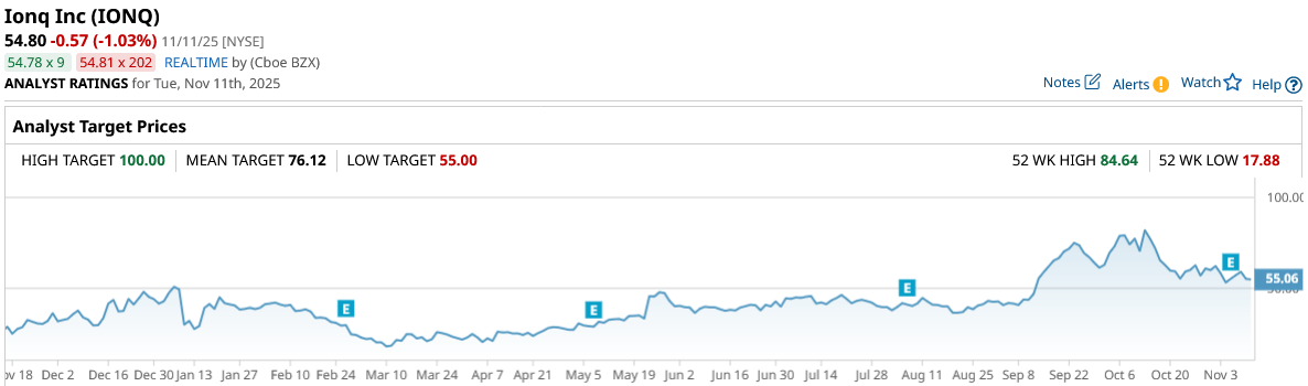Currently, the consensus price target for IonQ sits at around $74 per share, implying impressive upside for IONQ stock of around 33% from current levels.