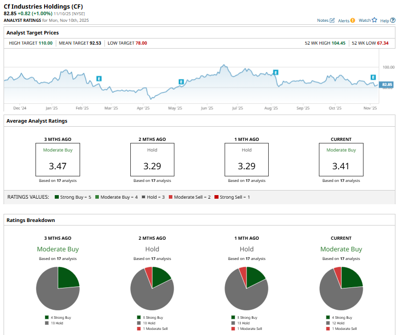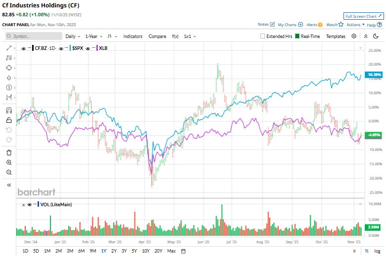 On Nov. 5, CF released its third-quarter earnings, and its shares dipped 4.2% in the next trading session due to rising cost factors. On the bright side, its adjusted EPS of $2.19 topped expectations, and revenue rose 21% year-over-year to $1.66 billion, above consensus estimates. The company benefited from favorable nitrogen market conditions, supported by higher pricing and healthy demand across its product portfolio.