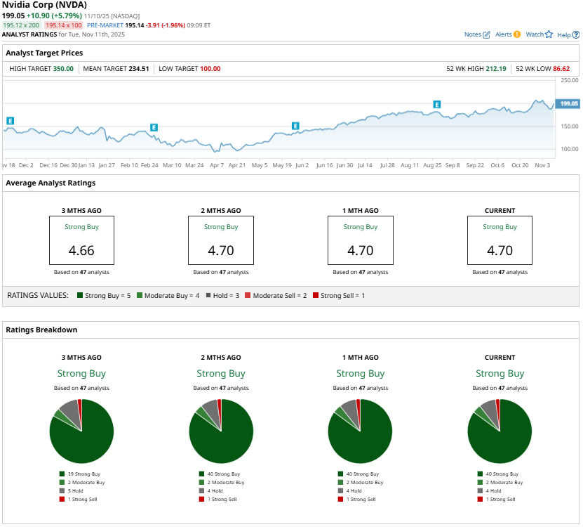 Wall Street remains optimistic about Nvidia’s prospects. The stock carries a “Strong Buy” consensus rating. Moreover, the highest price target of $350 implies about 82% upside from current levels.