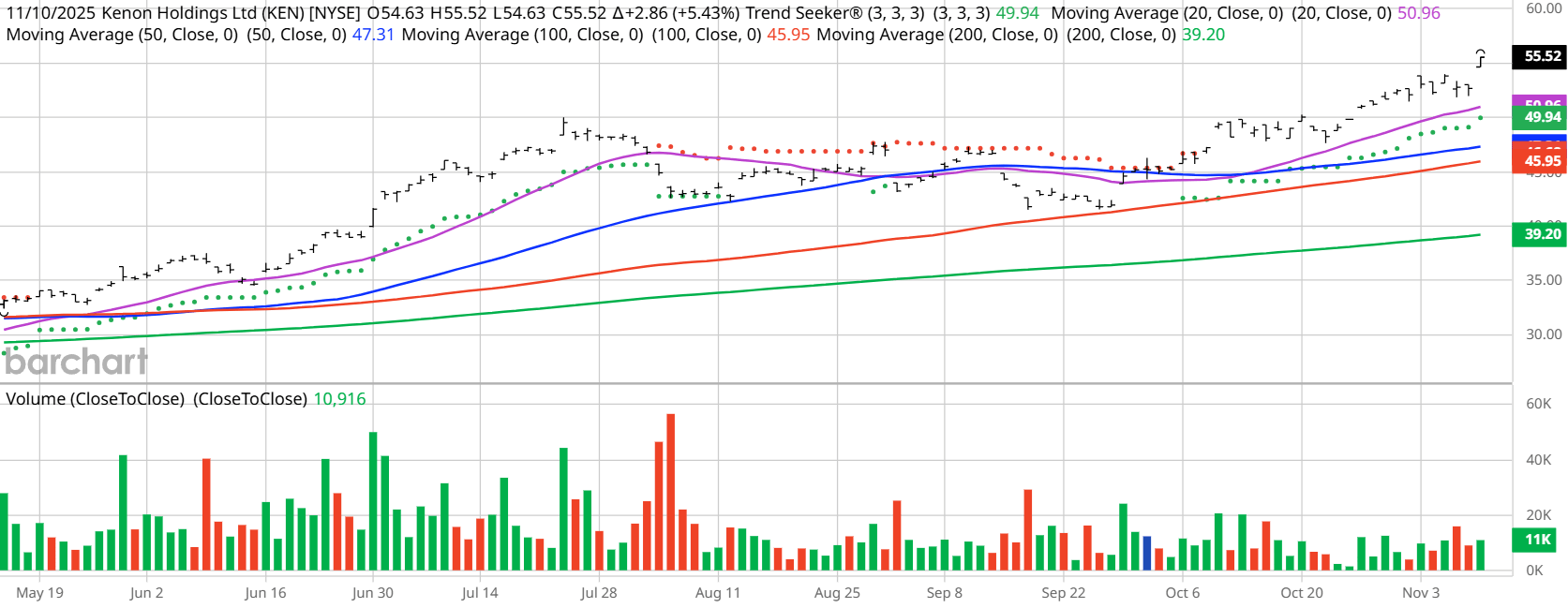 - Kenon Holdings (KEN) is trading at a new three-year high and has strong technical momentum.