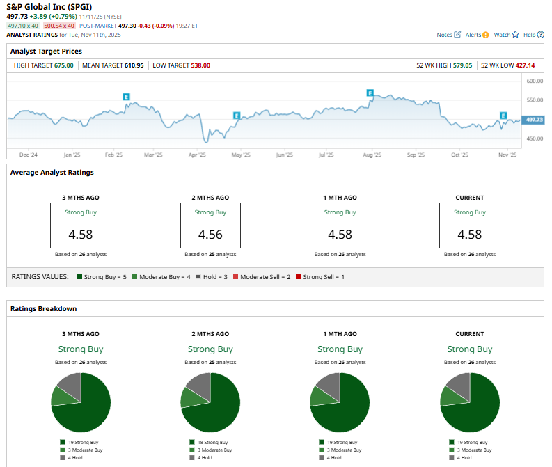 Among the 26 analysts covering SPGI stock, the consensus is a “Strong Buy.” That’s based on 19 “Strong Buy” ratings, three “Moderate Buys,” and four “Hold.”